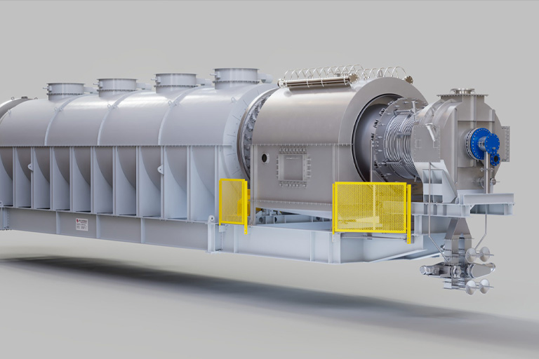 HP rotary calciners continuously process bulk materials using indirect heating at medium to high temperatures. They can work with various heat sources, including gas-based, electricity-based, or steam-based systems. These calciners are tailored to handle materials ranging from fine and dusty to oxidation-sensitive, heat-sensitive, potentially contaminating, and combustible.