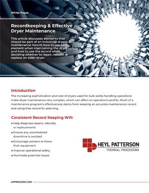 This white paper guide teaches how to develop an effective dryer maintenance program. What to include in an industrial dryer’s maintenance record, how to use each element, and when to repair, rebuild, or replace an older dryer.